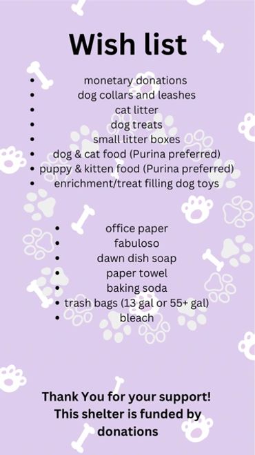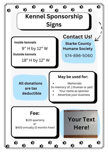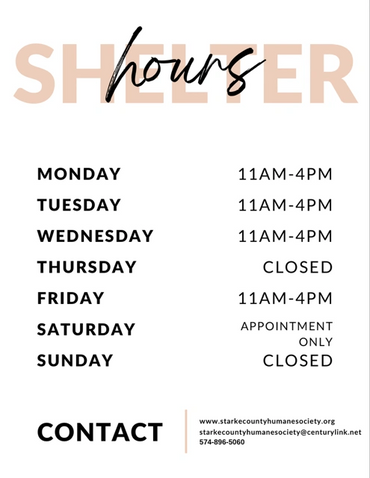 Starke County Humane Society is a small, private Animal Shelter. We are funded solely through adoption fees, check in fees and donations. We do not receive government assistance. We are fortunate that we do not have to euthanize for space since we are a private organization.